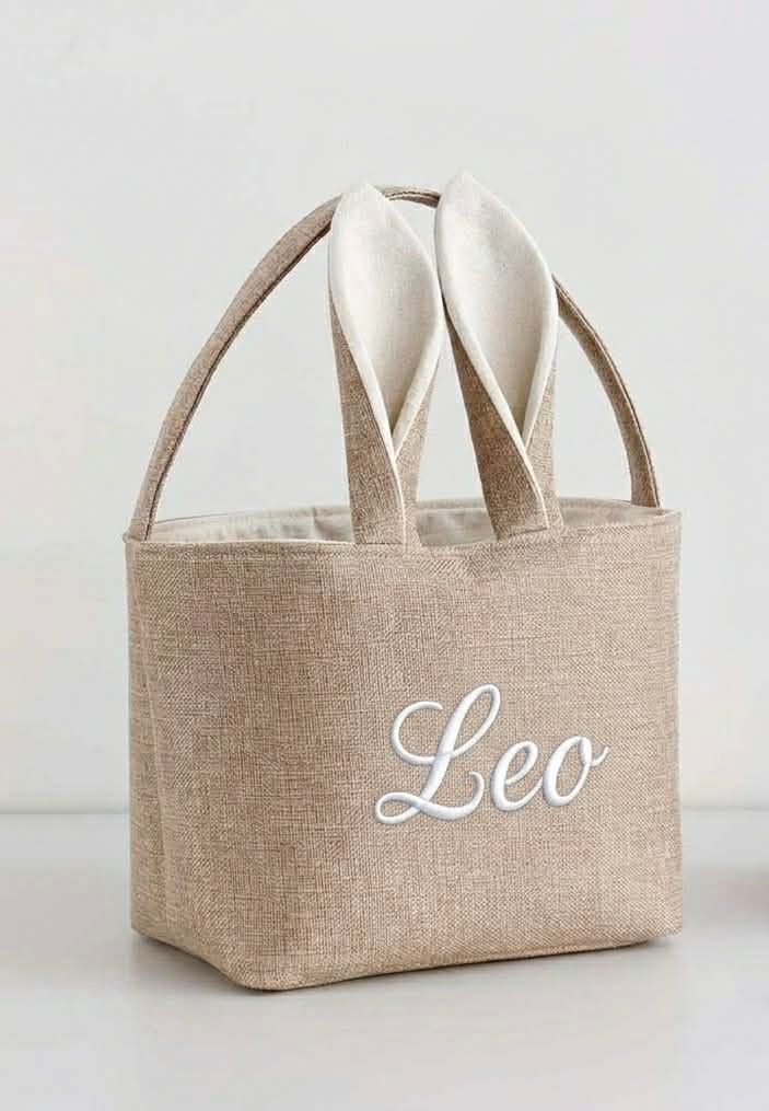 Embroidered Linen Burlap Easter Basket